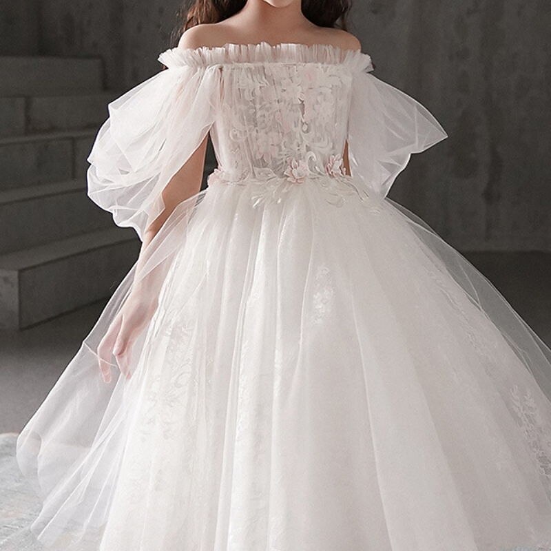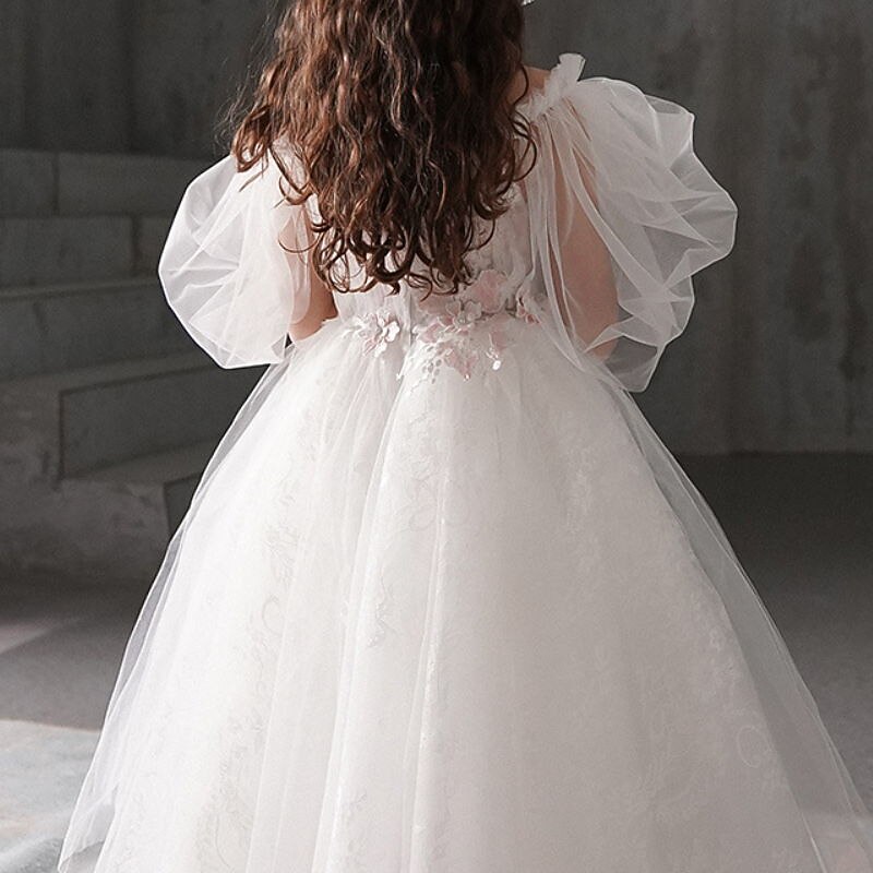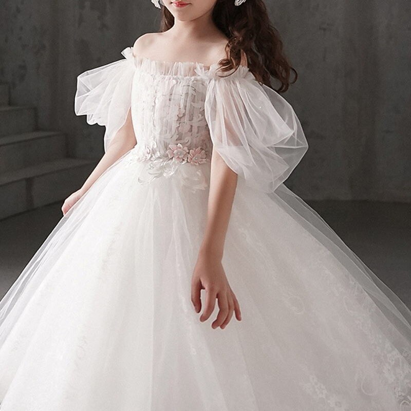 More information about Kids Girls' Flower Girl Dress Dress Solid Colored Short Sleeve Wedding Party Ruched Mesh Print Cute Princess Cotton Tulle Asymmetrical A Line Dress Tulle Dress Flower Girl's Dress Summer Spring 3-12