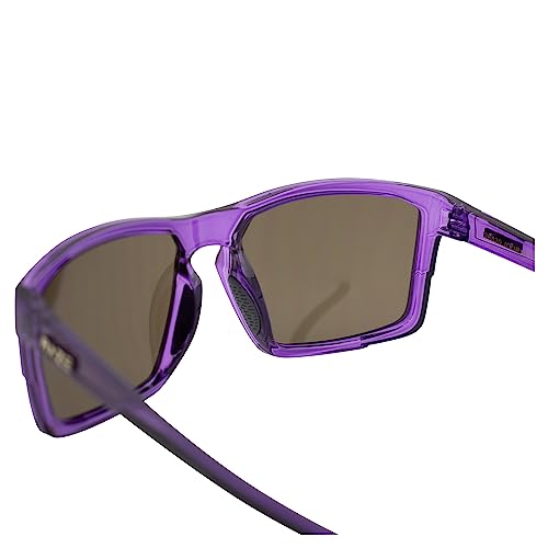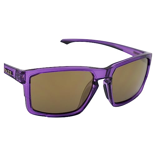 Raze Eyewear Journey Trendy & Fashionable Sunglasses Crystal Purple Gloss Frame w/Charcoal Accents & Smoke Gold Z Lenses