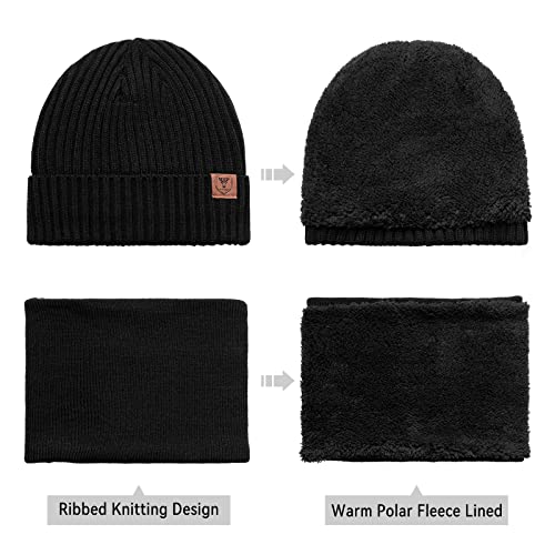 More information about OZERO 3 Pcs Winter Hat Scarf Gloves Set for Women Men: Touchscreen Gloves Knit Beanie Neck Warmer Set toasty Polar Fleece Lined