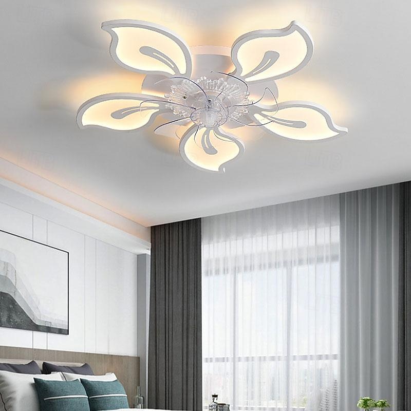 trending ! Ceiling Fan with Lights 65cm Dimmable LED 3 Color 6 Speeds Timing Reversible Blades with Remote Control, Household Fan Chandelier, indoor Low Profile Flush Mount Ceiling Fan