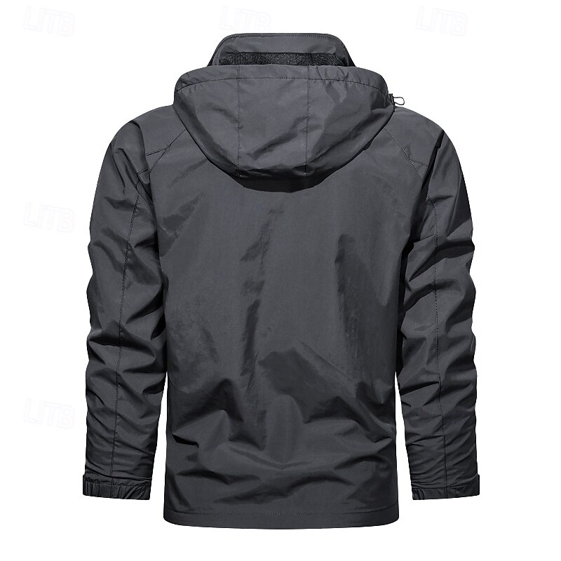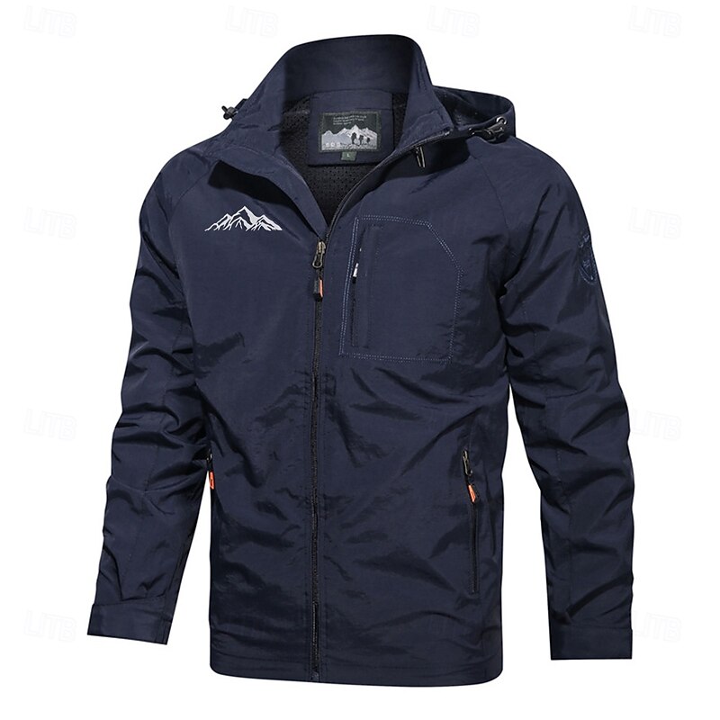 Highlights [Fabric] : Crafted from high-quality nylon, this men's jacket offers durability and a lightweight, waterproof design, making it excellent for outdoor adventures. The fabric is selected="selected" for its excellent water-resistant properties, ensuring reliable performance in various weather conditions. [Fit] : The jacket has a regular fit that provides comfort and flexibility, making it ideal for both active outdoor pursuits and casual wear. Its slim-fit cut enhances the natural silhouette, offering a contemporary and fashionable look without compromising on comfort. [Design Highlights] : Featuring a graphic mountain print and intricate embroidered details, this jacket adds a touch of rugged style. The zip-front closure allows for easy dressing, while the hood offers additional protection against rain and wind. The jacket is equipped with zippered side pockets for secure storage, perfect for keeping essentials like keys and smartphones safe. [Occasions] : This versatile jacket is suitable for numerous occasions, including sports outdoor activities, camping, and hiking. It's an excellent choice for fall and winter seasons, providing both functionality and style for various outdoor and casual settings. [Size Range] : Available in a wide range of sizes, including M, L, XL, 2XL, and 3XL, this jacket caters to diverse body types and preferences, ensuring a proper fit for everyone. Perfect for everyday use. premium materials and excellent craftsmanship ensure long-lasting durability.