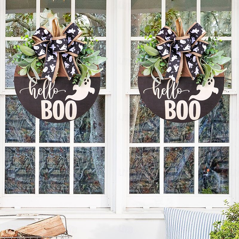 $11.49 - Halloween Door Sign Hanger Decorations, White Ghost BOO Wooden Door Plaque with Black Ribbon for Holiday Window and Wall Decor 2025. Shop for cheap Halloween Wreaths & Floral Decorations online? Buy at lightinthebox.com on sale today!