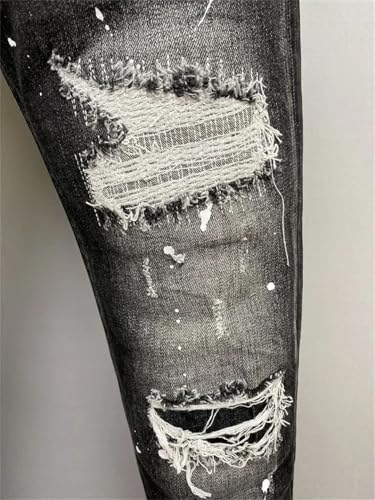 Men Denim Pants Hole Slim Jeans Pencil Trousers Metal Buttons Jeans