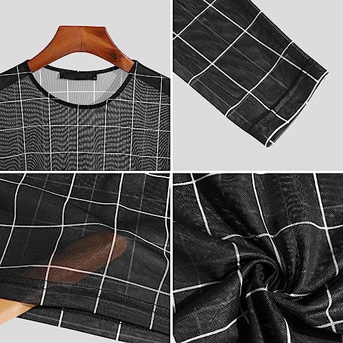 More information about Evankin Mens Sexy Lace Shirt Top See Through Grid Print Long Sleeve T-Shirt Sheer Mesh Undershirts for Male
